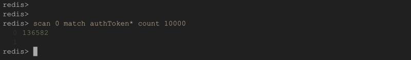 local resp = redis.call(‘SCAN’,c,’MATCH’,’authToken*’,’COUNT’,10000)