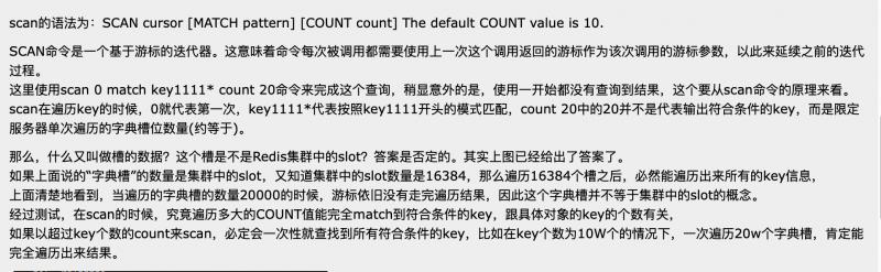 3、后来经过某个小伙伴的提示,看到了另外一篇对于scan命令count选项通俗的解释: