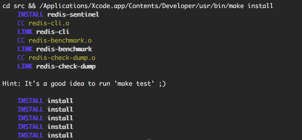 解压到/usr/local/redis目录中,然后依次执行以下命令: