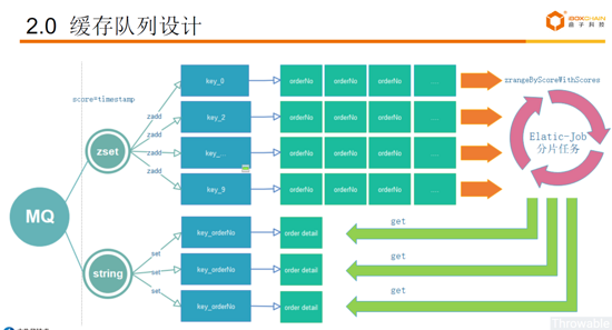 如果应用的数据量不高,实时性要求比较低,选用调度框架和 MySQL 进行短间隔轮询这个方案是最优的方案。但是笔者遇到的场景数据量相对比较大,实时性并不高,采用扫库的方案一定会对 MySQL 实例造成比较大的压力。记得很早之前,看过一个PPT叫《盒子科技聚合支付系统演进》,其中里面有一张图片给予笔者一点启发: