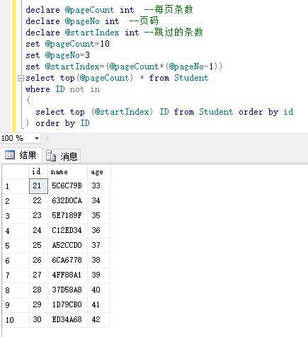 declare @startIndex int –跳过的条数
