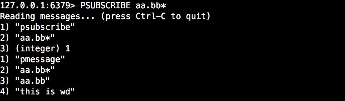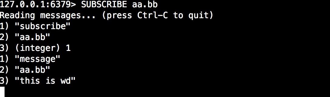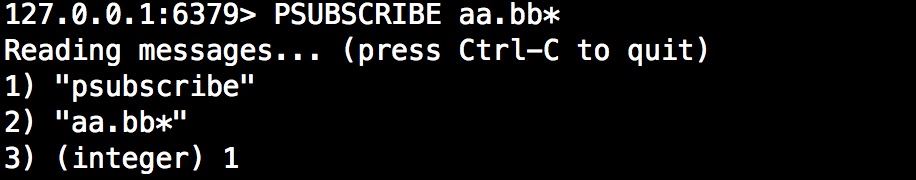 在以下示例中,将分别用SUBSCRIBE命令订阅aa.bb和使用PSUBSCRIBE模式订阅频道aa.bb*。