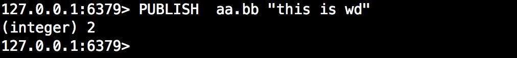 此时我们使用PUBSH向aa.bb发送消息,返回接受到的频道数,两个订阅者都能收到消息。
