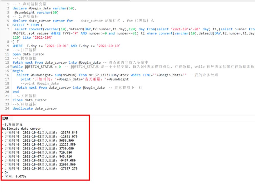 到此这篇关于SQL利用游标遍历日期查询的文章就介绍到这了,更多相关SQL游标遍历日期查询内容请搜索以前的文章或继续浏览下面的相关文章希望大家以后多多支持!