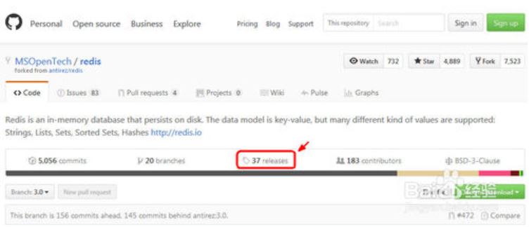 1、要安装Redis,首先要获取安装包。Windows的Redis安装包需要到以下GitHub链接找到。链接:https://github.com/MSOpenTech/redis。打开网站后,找到Release,点击前往下载页面。