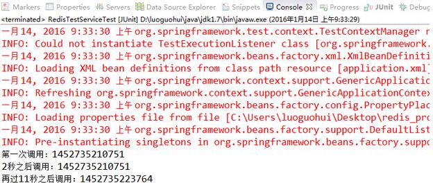 System.out.println("第一次调用:" + redisTestService.getTimestamp("param"));