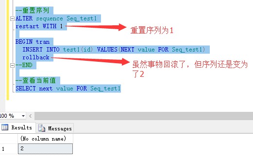 - 2、与identity列不同,Sequence有肯能插入重复值(Sequence可以设置循环,对于循环的Sequence来说会有重复值)