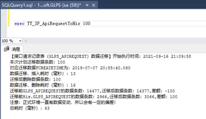 print ‘【接口请求记录表(GLPS_APIREQUEST)数据迁移】开始执行时间:’ + convert(nvarchar(50),@beginTime,20);