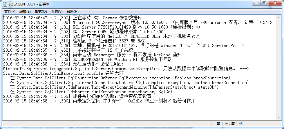 在SQL Server代理日志的开始就有信息消息。我们每步都过一遍,简单介绍下消息的意思。