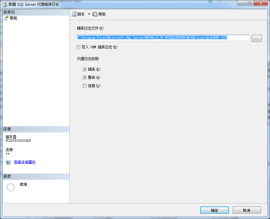 配置SQL Server代理错误日志