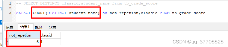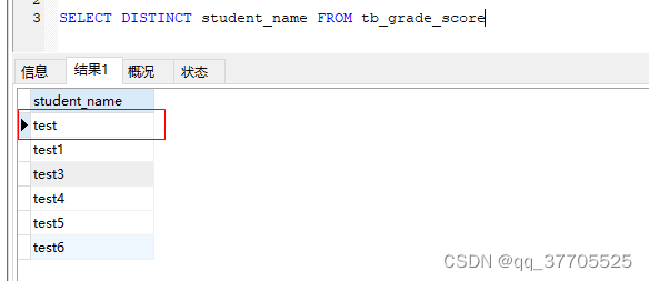 一般用来返回不重复的记录条数,返回不重复的条数(去掉test重复的,就剩下6条)