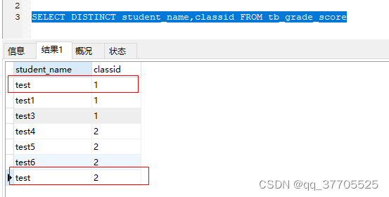 存在两条完全相同的纪录,用关键字distinct就可以去掉