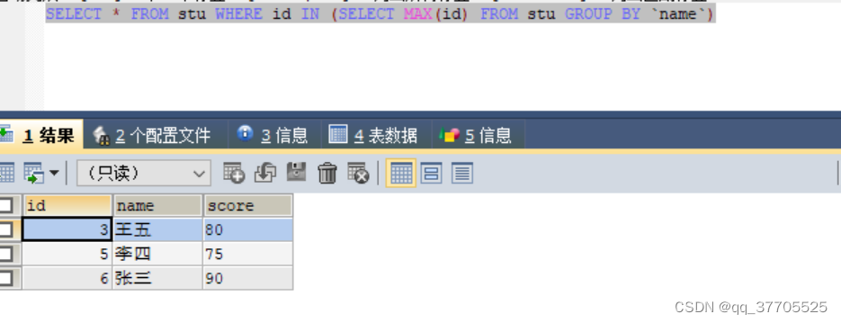 1. 查询根据名字去重后数据(名字相同取id值大的)