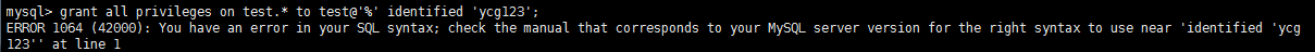 输入命令:Grant all privileges on test.* to 'test'@'%';