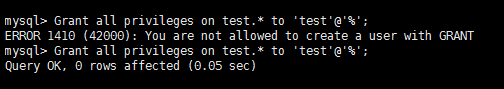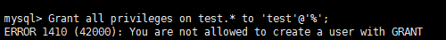 MySQL 提示错误:ERROR 1410 (42000): You are not allowed to create a user with GRANT解决办法