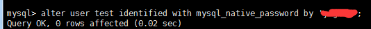 4.修改加密方式:alter user test identified with mysql_native_password by '';