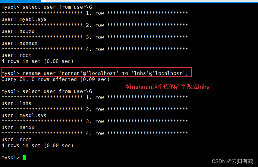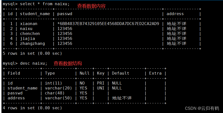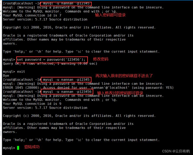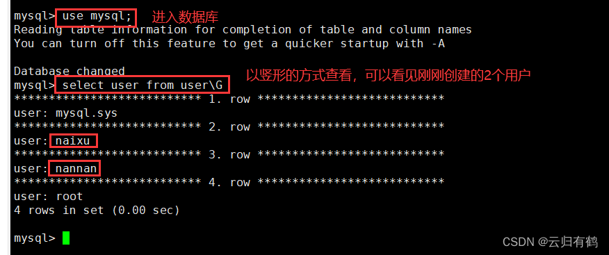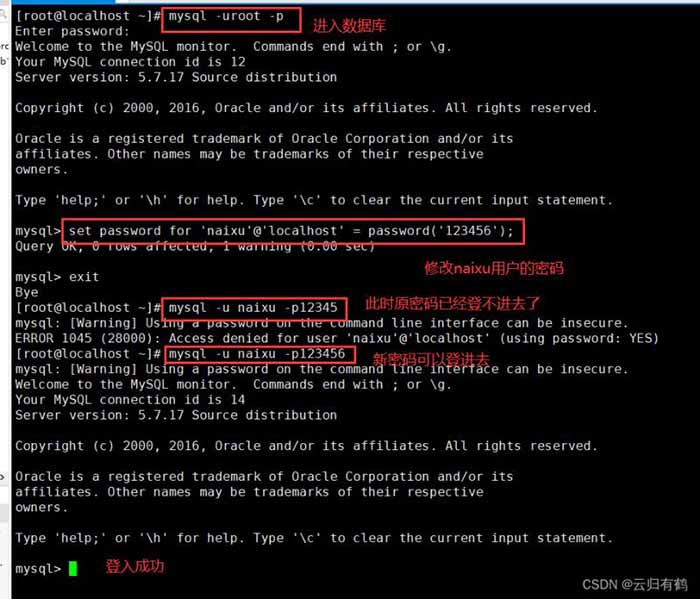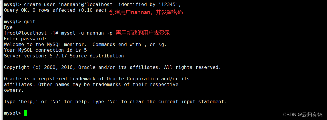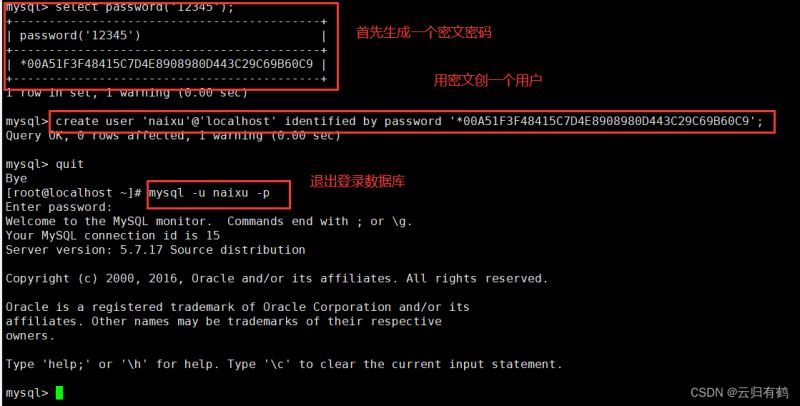 #######若使用加密密码,需要先使用SELECT PASSWORD(‘密码’); 获取密文,再在语句中添加 PASSWORD ‘密文’;
