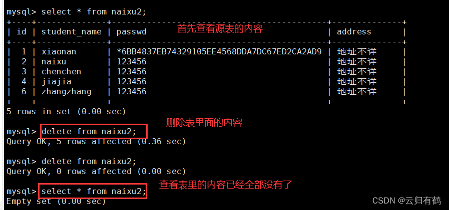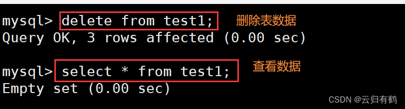 #DELETE清空表后,返回的结果内有删除的记录条目;