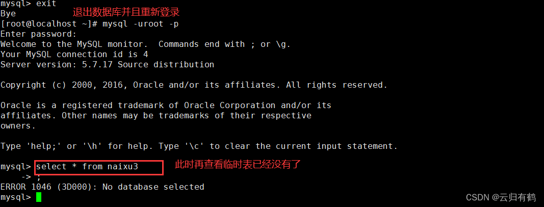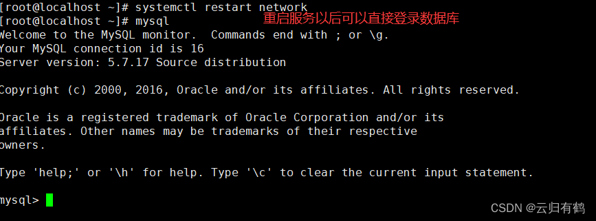 登入数据库之后再次修改my.conf配置文件,注释掉之前添加的配置命令,并再次重启服务
