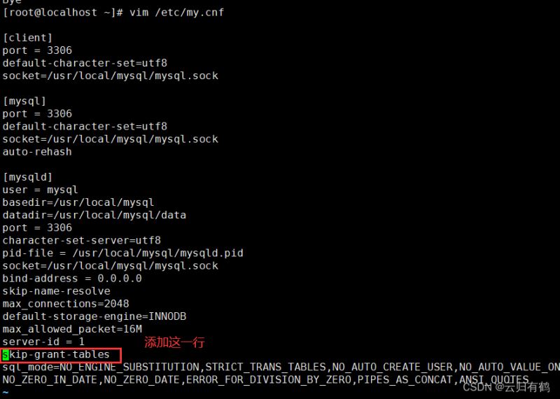 skip-grant-tables #添加,使登录mysql不适用授权表