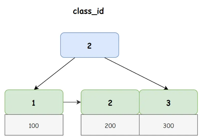 在 student 中非聚簇索引 class_id 对应 B+ 树如下图所示: