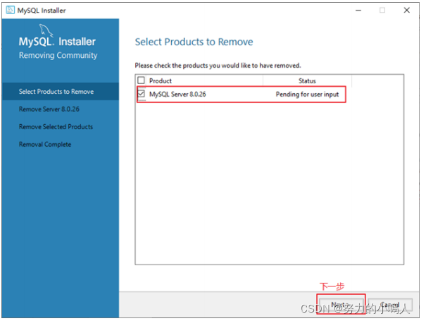 如果想要同时卸载MySQL8.0的安装向导程序,勾选 Yes,Uninstall MySQL Installer