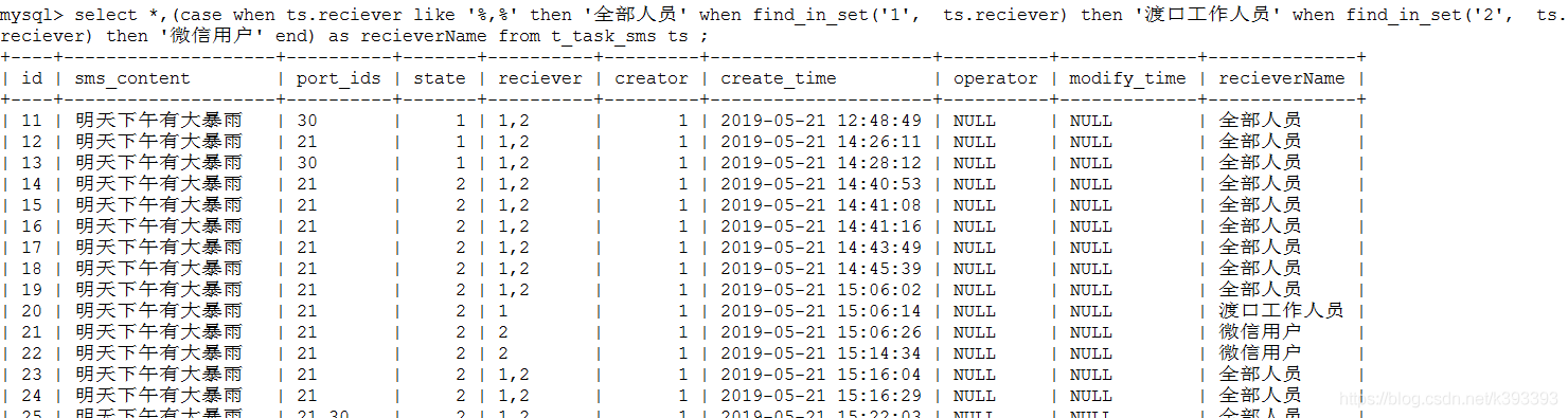 when find_in_set(‘2’, ts.reciever) then ‘微信用户’ end) as recieverName