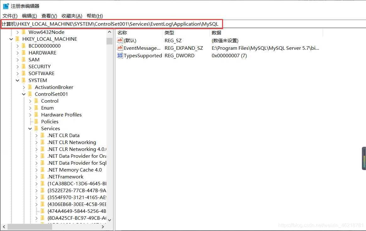 再删除注册表:HKEY_LOCAL_MACHINESYSTEM\ControlSet002\Services\Eventlog\Application\MySQL文件夹。