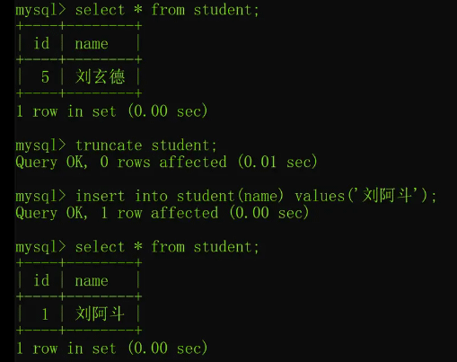truncate 在 InnoDB 引擎中会重置自增列,如下命令所示: