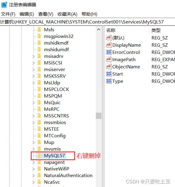 HKEY_LOCAL_MACHINE\SYSTEM\ControlSet001\services\MySQL
