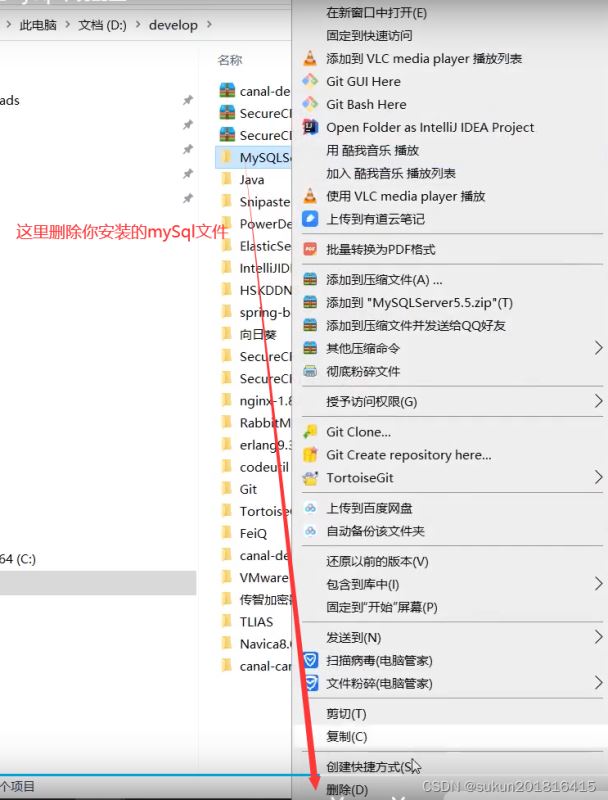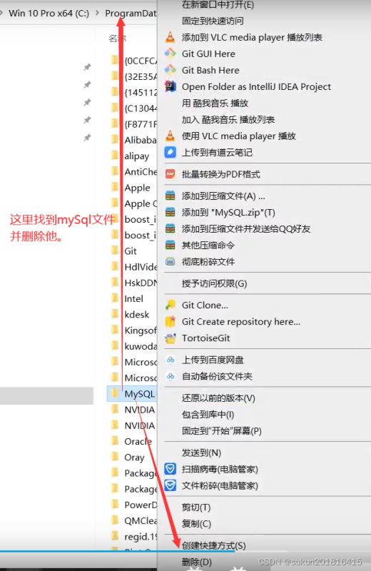 这里进入programData里面,找到你的mysql文件,并将其删除。