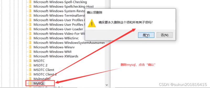 (1.)这里删除按照你自己安装的目录,找到你的MySql,并将他删除。