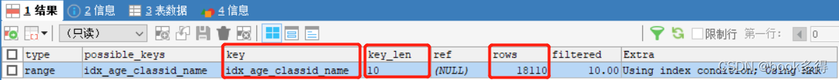 - 第二个把联合索引“idx_age_name_classid”的age,name和classid都用上了。
