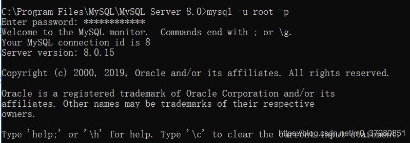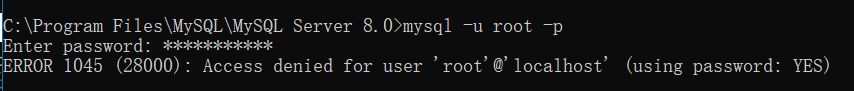 注:可能会出现下面的情况,输入密码后报错:Access denied for user ‘root’@‘localhost’ (using password: YES)