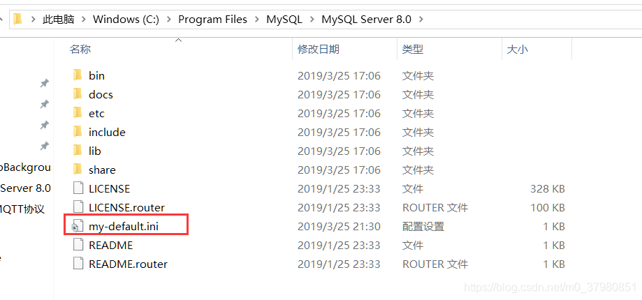 以我的电脑为例,在mysql安装路径下是没有.ini文件的。