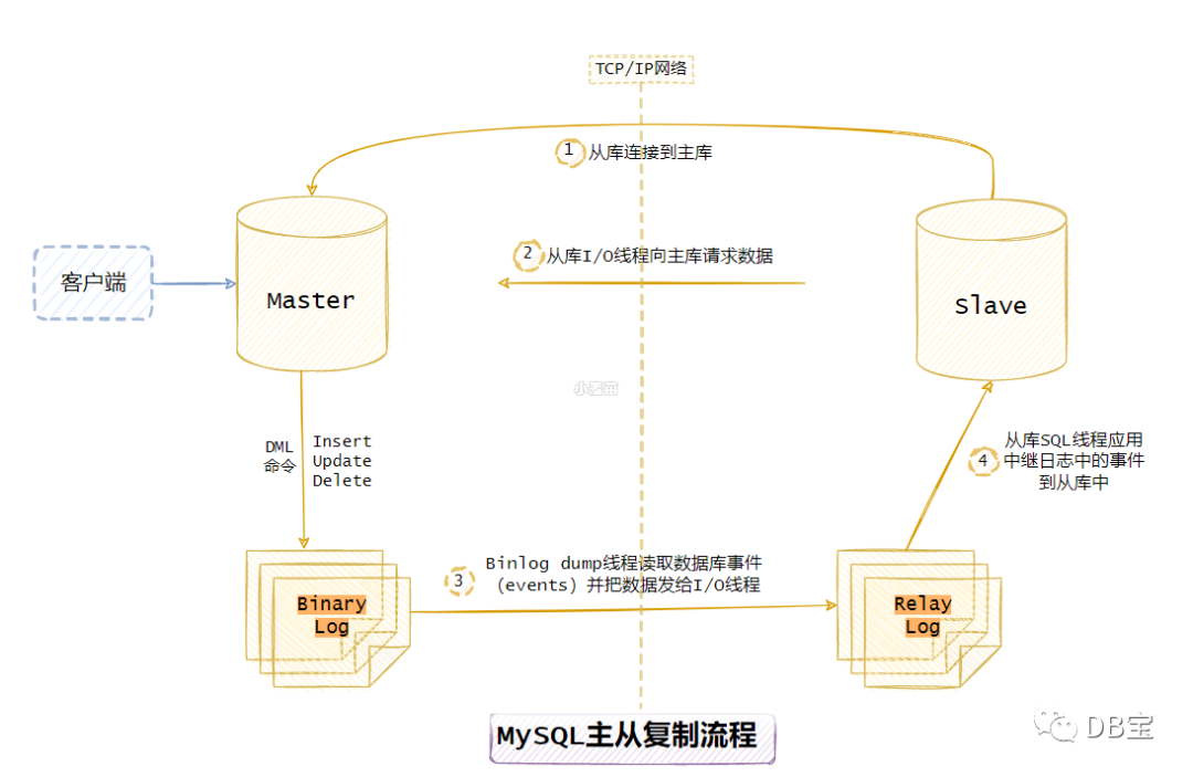 主库将更新写入Binlog日志文件后,需要等待数据更新已经复制到从库中,并且已经在从库执行成功,然后才能返回继续处理其它的请求。同步复制提供了最佳安全性,保证数据安全,数据不会丢失,但对性能有一定的影响。