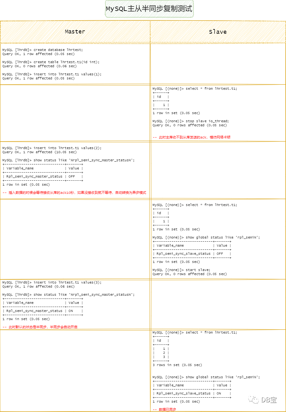 MySQL 5.5版本之后引入了半同步复制功能,主从服务器必须安装半同步复制插件,才能开启该复制功能。如果等待超时,超过rpl_semi_sync_master_timeout参数设置时间(默认值为10000,表示10秒),则关闭半同步复制,并自动转换为异步复制模式。当master dump线程发送完一个事务的所有事件之后,如果在rpl_semi_sync_master_timeout内,收到了从库的响应,则主从又重新恢复为增强半同步复制。