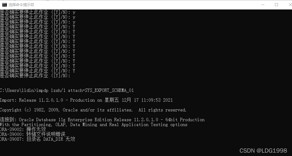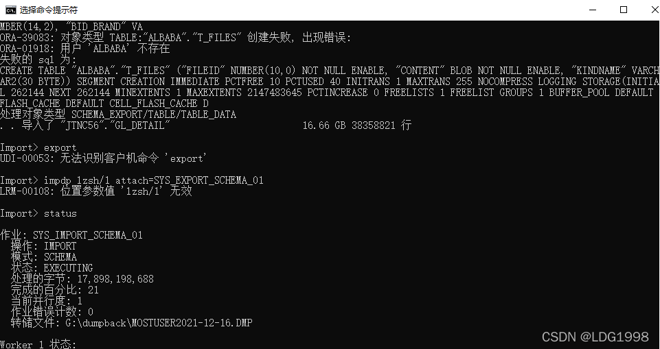 我出现上面的错误是因为作业的名称写错了:SYS_EXPORT_SCHEMA_01应该是SYS_IMPORT_SCHEMA_01 才正确!