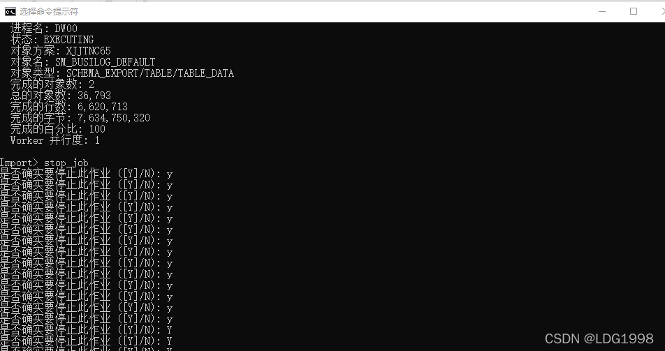 接着,当我使用 stop_job 这条命令后会提示是否停止作业,这时只需要输入一次Y然后回车两次就好了,不需要一直输入Y。0.0