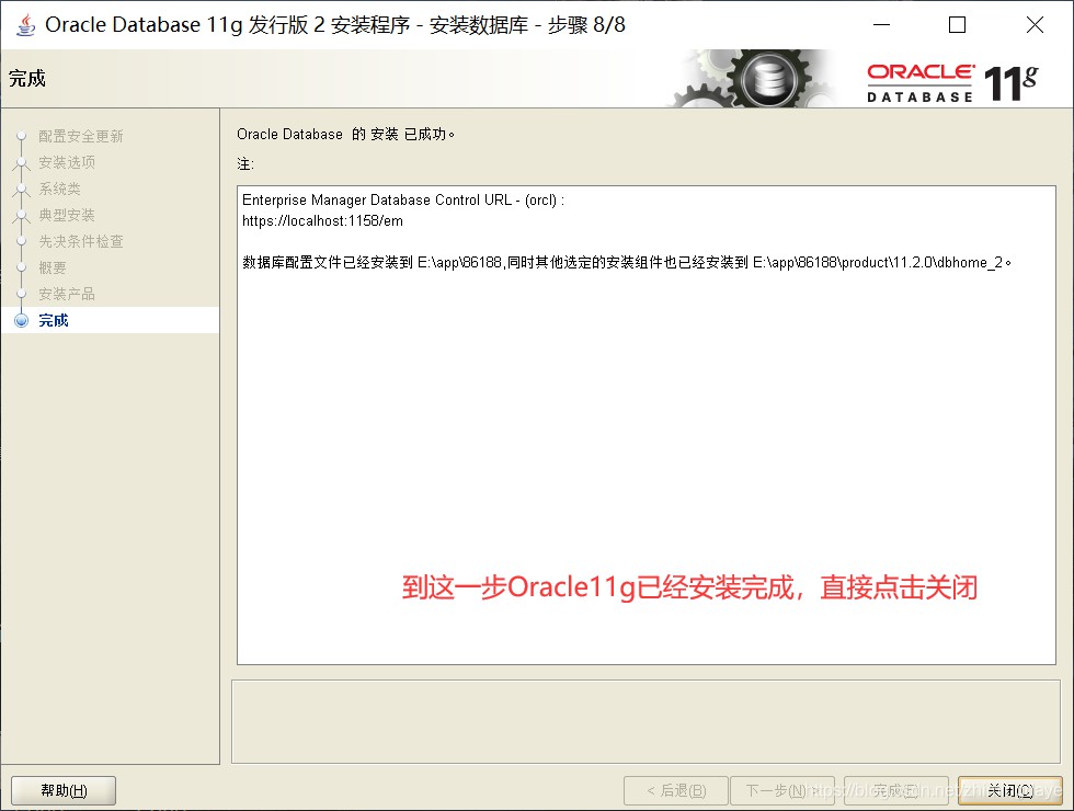 12 到这一步Oracle11g已经安装完成,直接点击关闭。