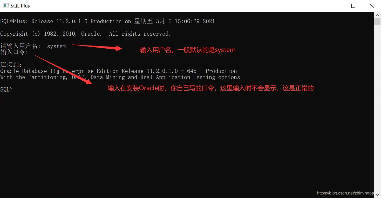 14 输入用户名:system和你刚才设置的密码。看是否连接成功。