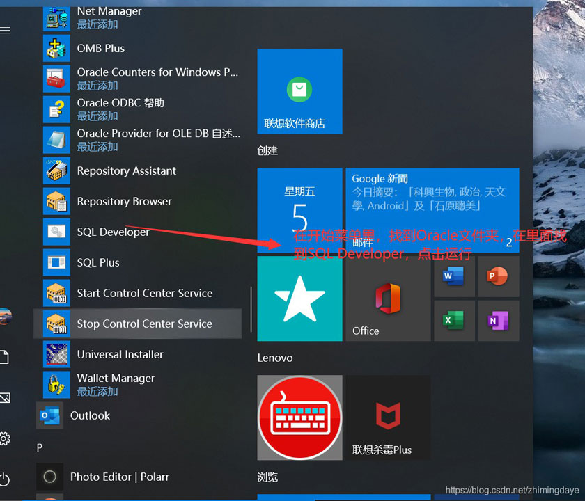 C:\ProgramData\Microsoft\Windows\Start Menu\Programs\与Oracle相关的文件夹。