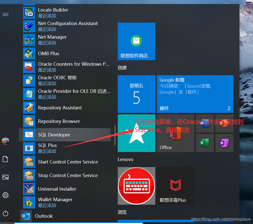 13 点击开始菜单,再Oracle文件夹下找到SQL PLus,点击运行。