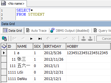 WHERE XUEHAO > 1–执行时报”ORA-00904: “XUEHAO”: invalid identifier”