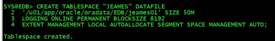 ‘/u01/app/oracle/oradata/EDB/jeames01′ SIZE 50M