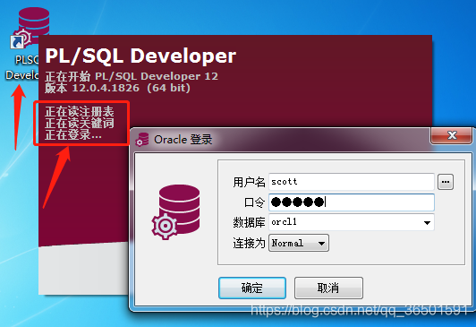 注意:如果输入信息不正确,打开plsql,会显示重新输入。