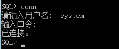 运行SQL命令行 –> 输入conn –> 输入用户名:system –> 输入口令(密码)