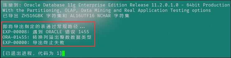 在进行数据库备份时候,导出dmp数据出现““ORA-01455: 转换列溢出整数数据类型”的错误
