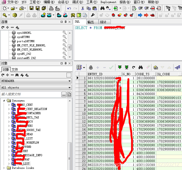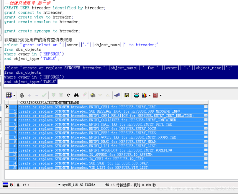 在只读账号HTREADER端执行:添加显示各个表信息;在SYSNONYM目录下,tables目录下无显示