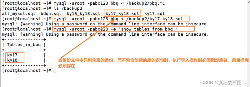 mysqldump备份与恢复:MySQL自带的备份工具,可方便实现对MySQL的备份,可以将指定的库,表导出为SQL脚本,使用命令mysql导入备份的数据